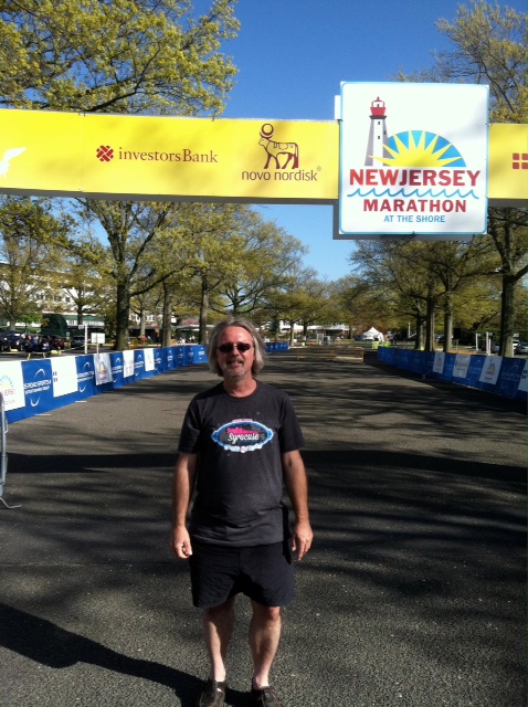 The first part of the marathon led out from the racecourse along a mazy, winding route around the suburban neighborhoods of Oceanport and Monmouth Beach. There, events of the last few months played out right before our eyes. We saw our first evidence of the effects of Hurricane Sandy–several houses along the route were in the process of being elevated on pilings, their owners obviously anticipating the possibility of similar storms in the future. And the Boston Marathon bombing was never far from our thoughts, especially when, at one point, we ran toward a big black garbage bag that lay in an unfamiliar place in the middle of the road.