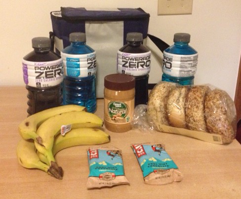 Sticking with the tried and true–bagels for carbs, peanut butter for protein, bananas for potassium, Clif bars for snacking and plenty of hydration. There’s enough there to choke an army, but I am determined to keep the fuel levels topped up all day tomorrow. If I bonk, it won’t be for lack of food.