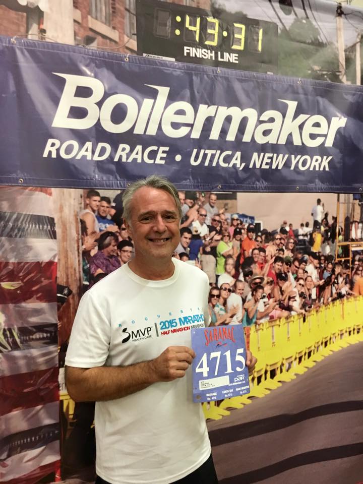 Again, I kept my emotions under control, because I could feel I was finally starting to run strong. In fact, by the time I started the Champlin Avenue hill downhill, I was more like my old self, hitting an effortless 8:50 min/mile pace. The long slog along Whitesboro Street came and went without incident, and as I descended down Court Street and over the finish line knowing that I wouldn’t PR or even break eighty minutes and keep my place in the advanced corral next year, I was not in the least bit disappointed.