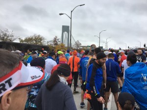 The bus ride seemed to take forever, as did the walk from the drop off to the runner’s village. Security was everywhere — this was just a few days after the truck attack on lower Manhattan after all, which I’m sure added to everyone’s anxiety.