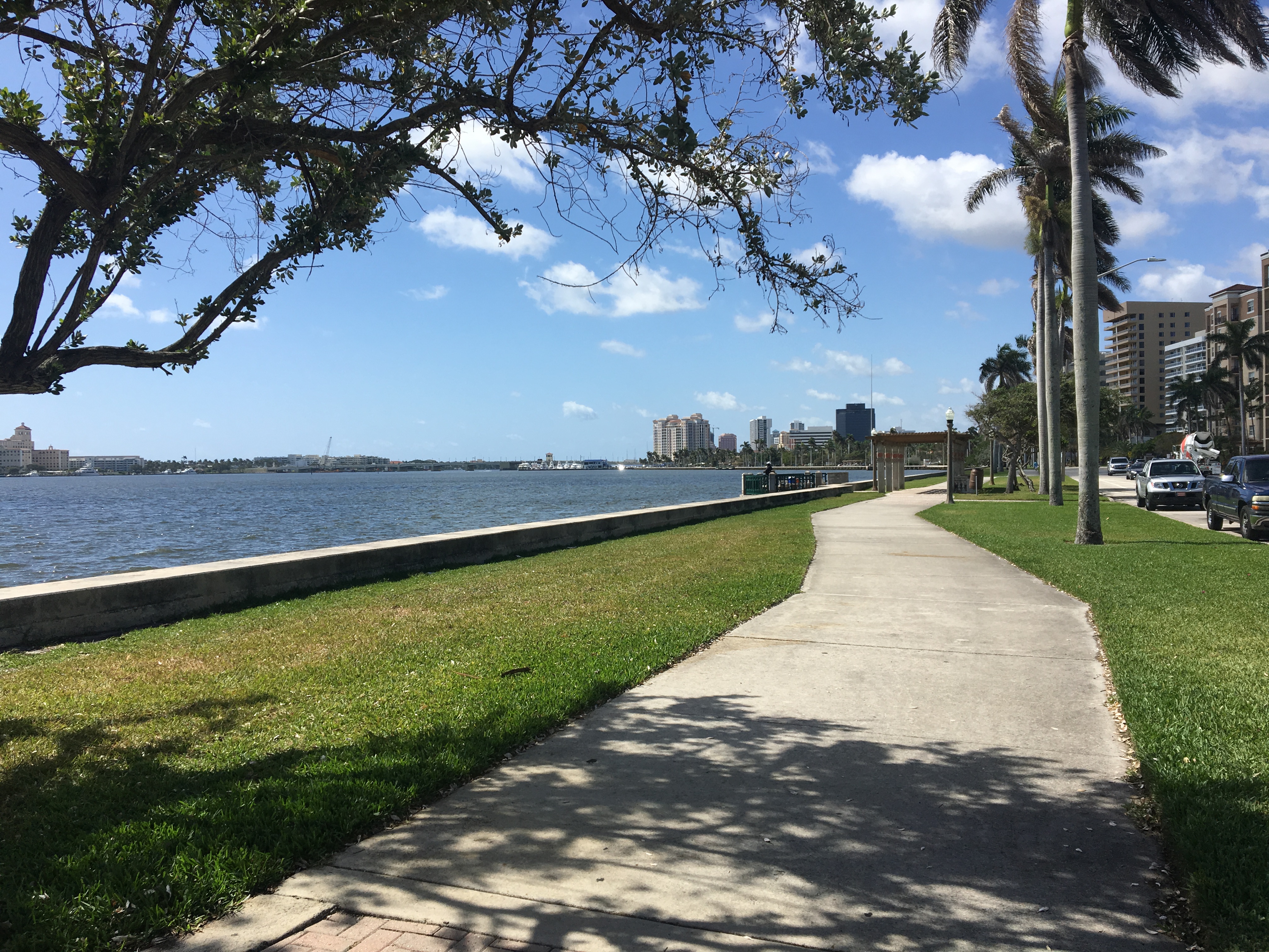 Then, after a quick jaunt down S. County Road, I opted to run through a ritzy neighborhood, along the wonderfully named Coconut Row, past houses hidden by 20-foot-high privacy hedges, before crossing the Royal Park Bridge