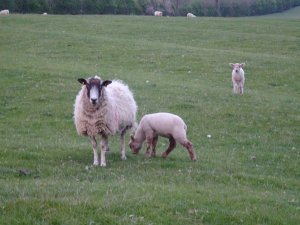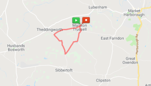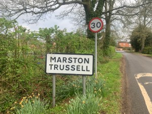 Sheep grazing near Marston Trussell. Note the ridges in the field, evidence of strip farming during medieval times.