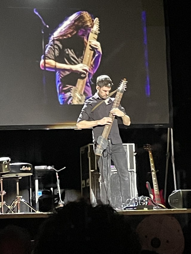 As on the record, the song moves toward the inevitable Emerson synthesizer solo. But in the absence of Emerson and his massive keyboard rig, without the aid of huge Moog patch bays and miles of miles of cables, Fitzpatrick nails it impeccably on a Chapman Stick. (For the uninitiated, that’s the odd-looking instrument that cannot decide if it is a bass guitar, lead guitar, or something from the Star Wars cantina scene.)