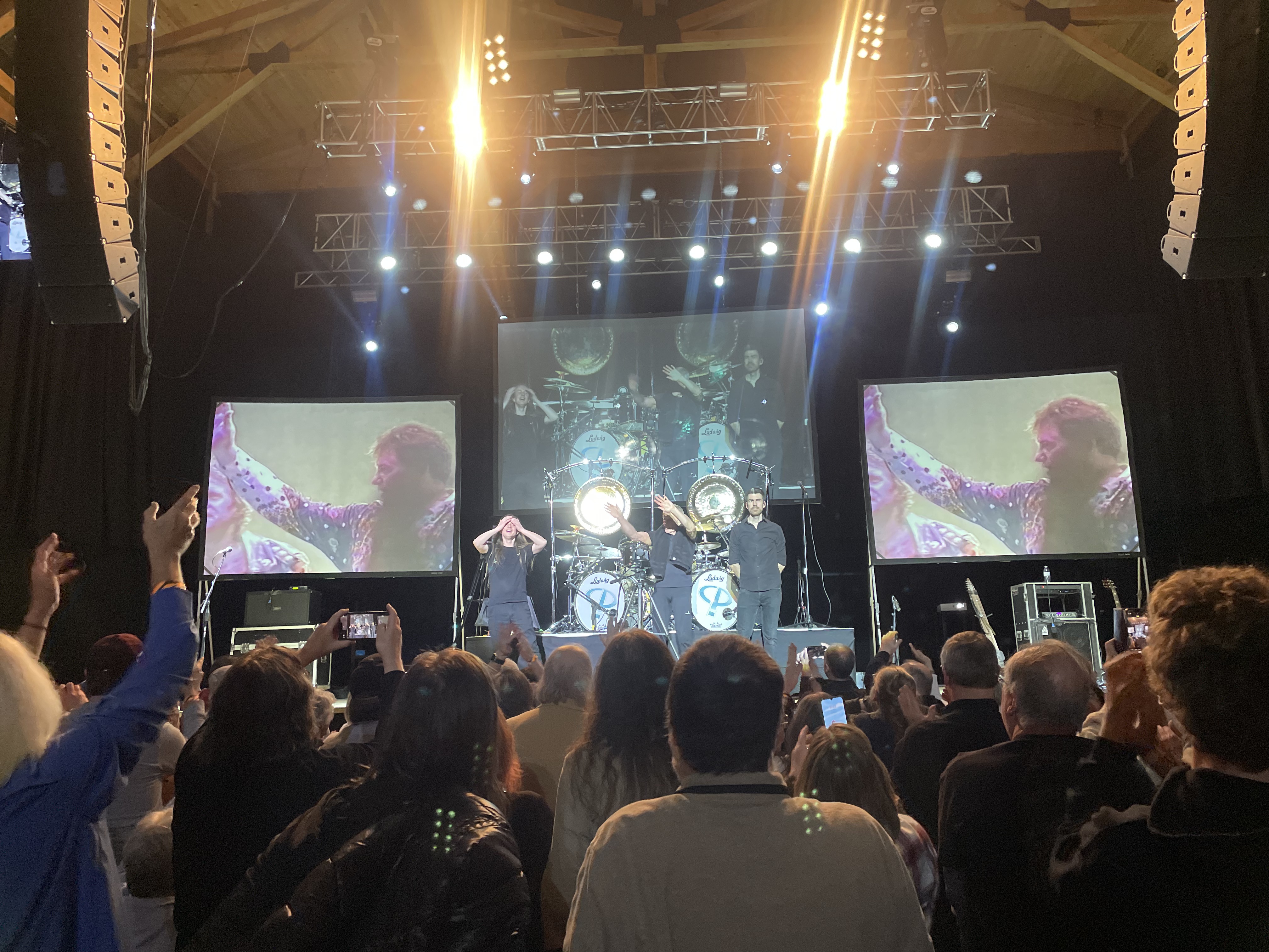 The show climaxes by looking back one last time. First Lake, then Emerson, appear on the screens for “Lucky Man” and “Fanfare for the Common Man” respectively. The vintage footage of an over-the-top Emerson — bouncing off his keyboards, spray painting a fake brick wall with the ELP logo, then pulling his B3 on top of himself to solo backwards on the keys — satisfies the faithful as you’d expect. But it also gives the newcomers, including myself, a brief glimpse into the incredible showmanship they never managed to see in person all those years ago.
